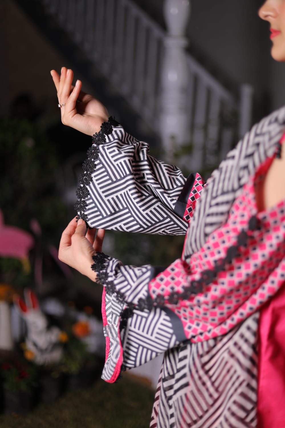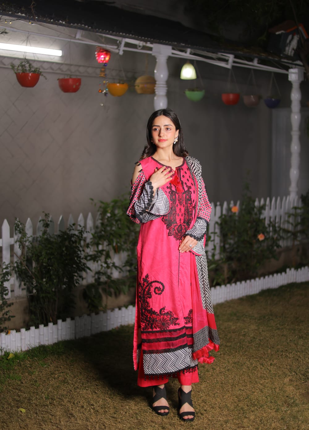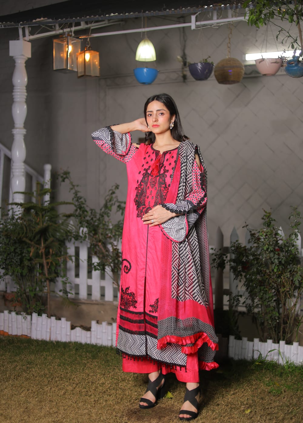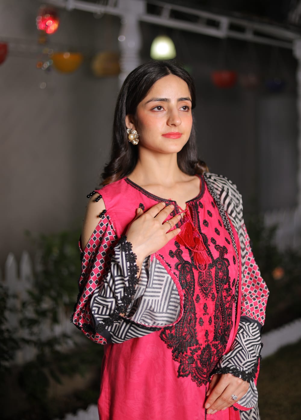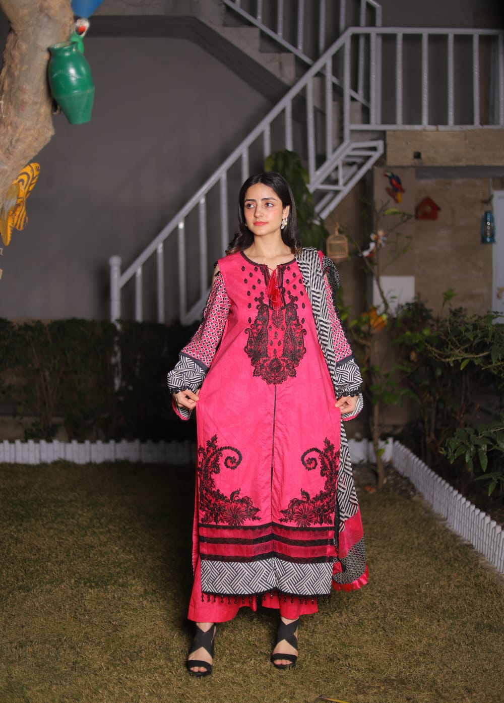 SANA ABID Unstitch Printed Embroidered 2-piece suit is designed for graceful summer styling with a refined and detailed look.